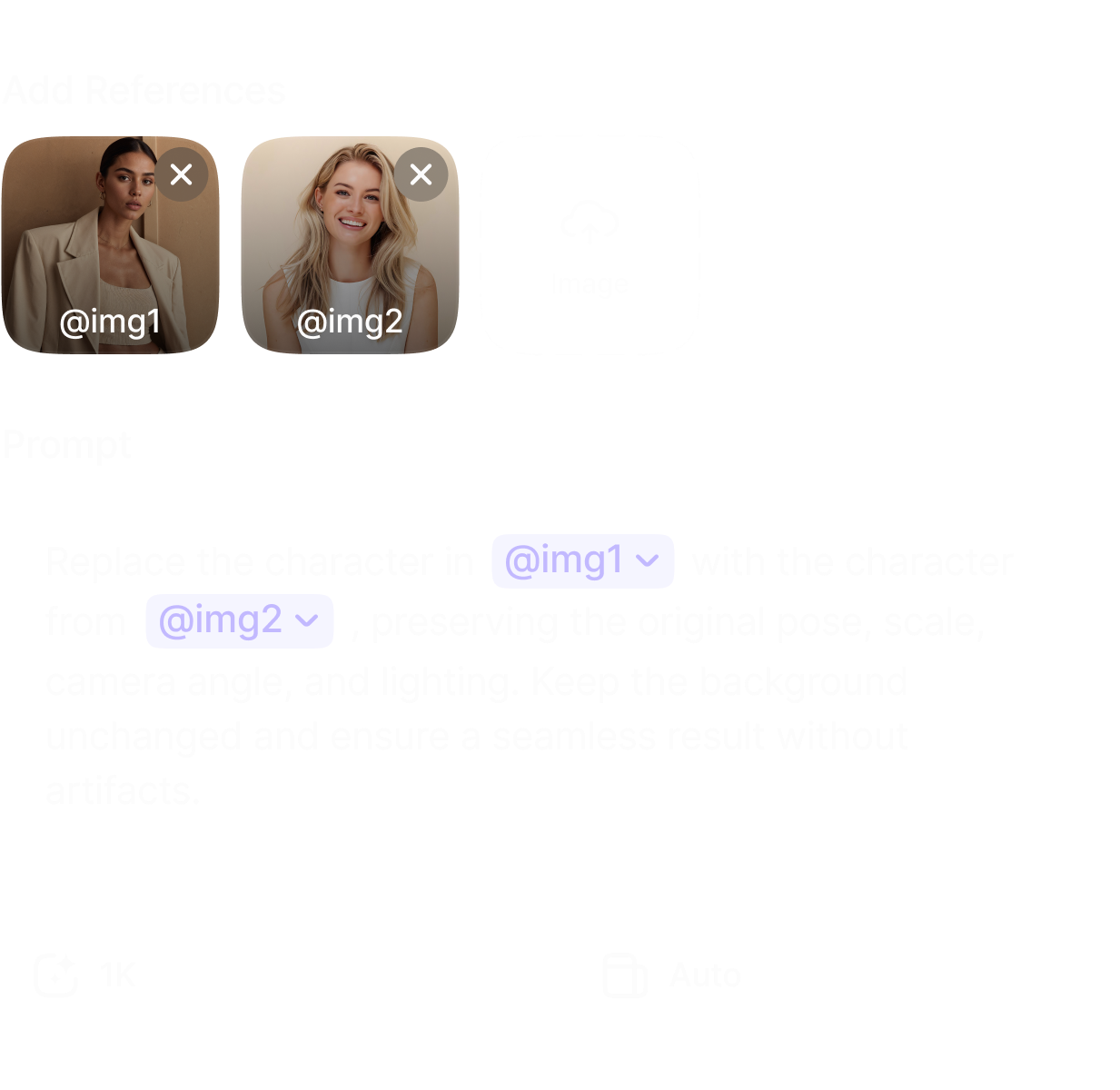 Create stunning visuals from simple prompts or references. Generate, edit, and transform images with precision — from concept art to polished, ready-to-use content.