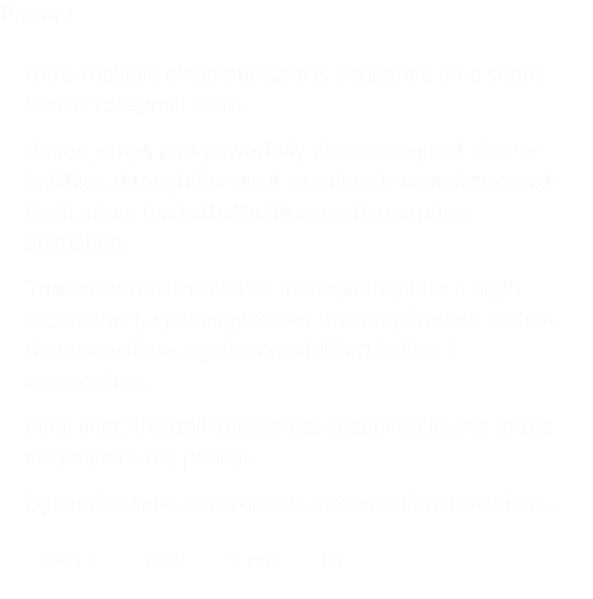 Turn ideas into cinematic videos in seconds. Describe a scene, style, or concept, and generate high-quality clips with realistic motion, lighting, and effects — no editing skills required.